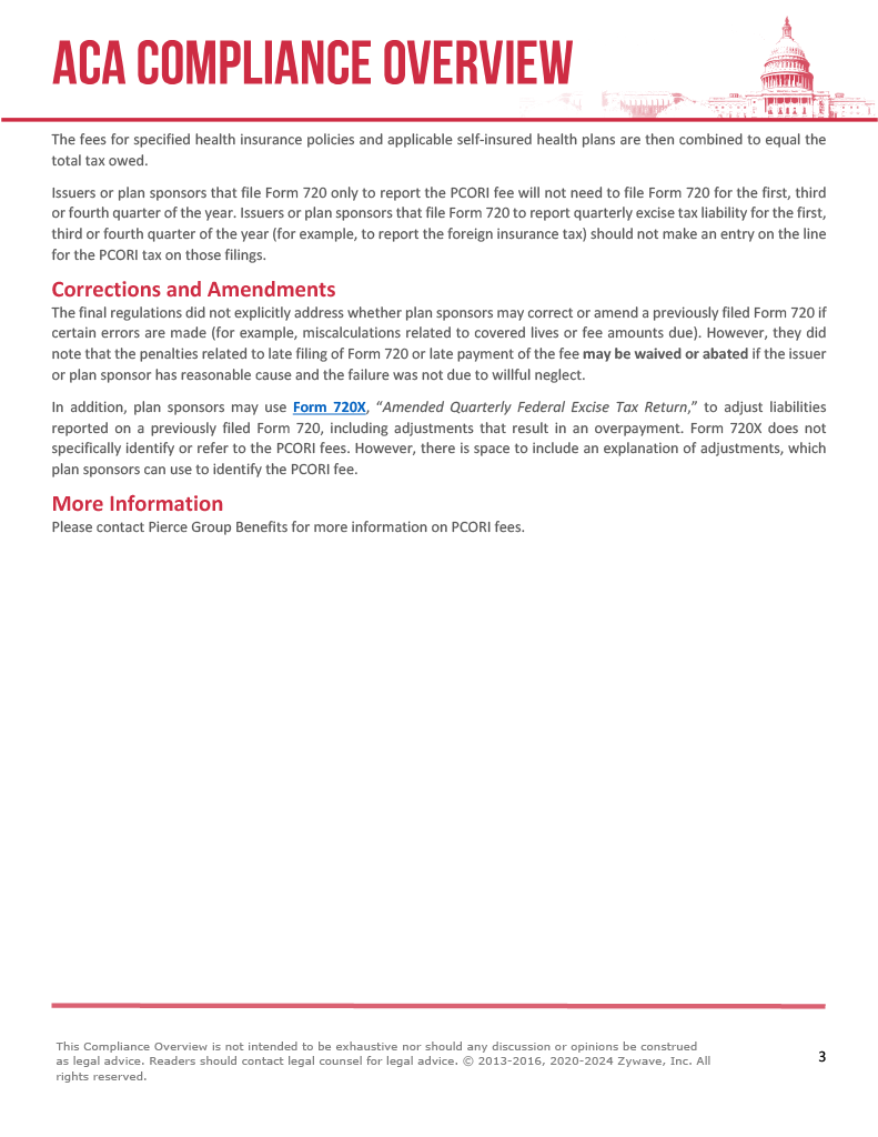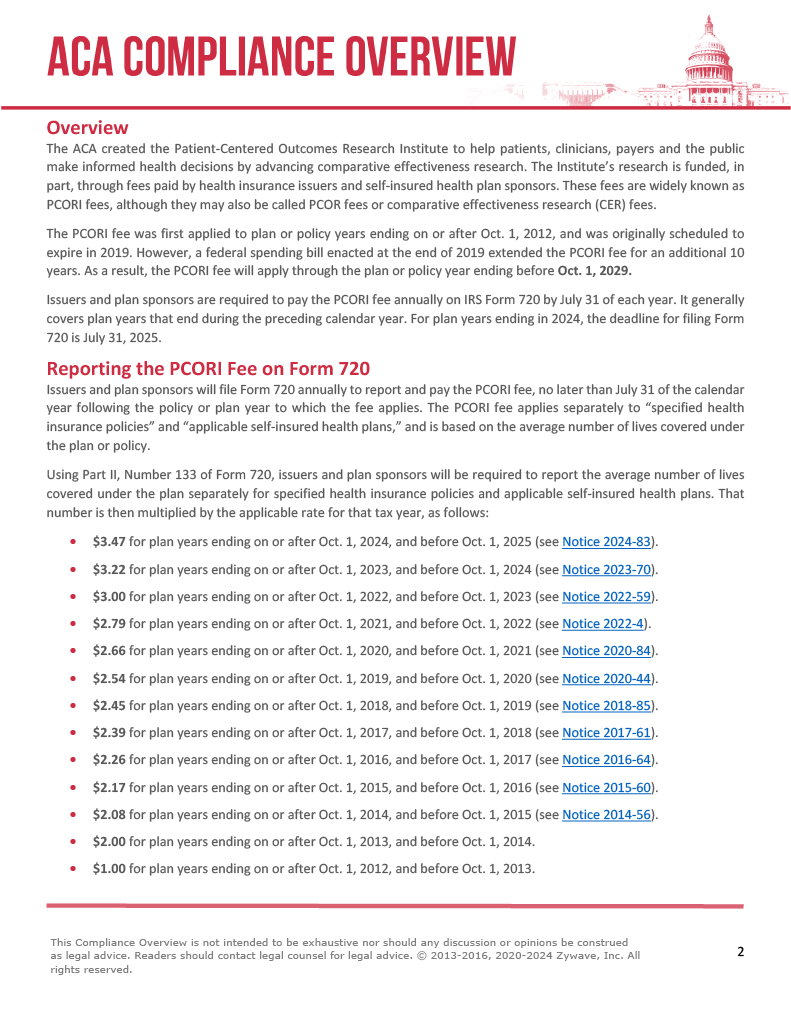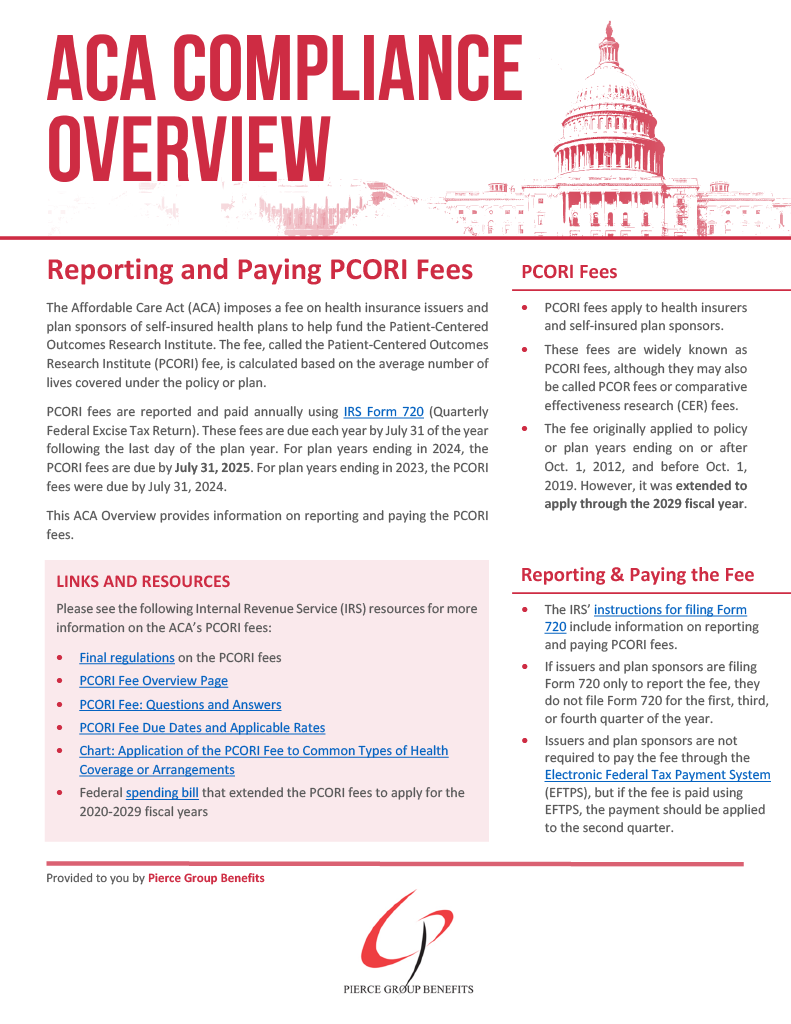 ACA Compliance Overview: Reporting and Paying PCORI Fees
