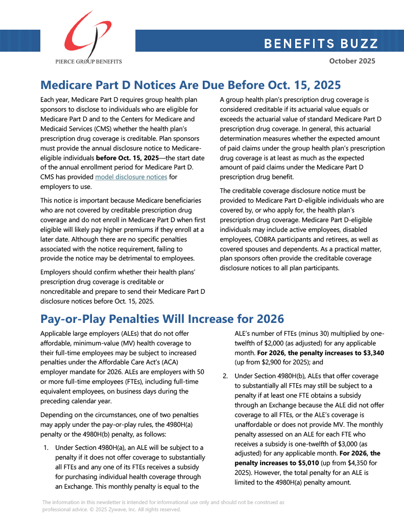 Benefits Newsletter: Medicare Part D Notices Are Due Before Oct. 15, 2025