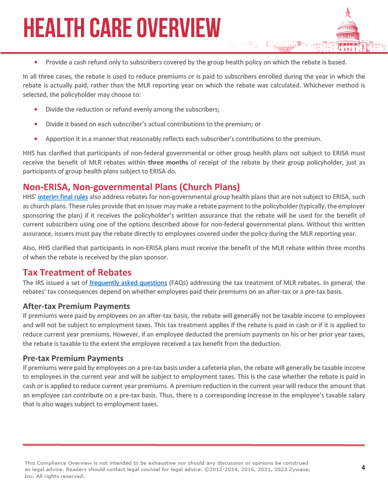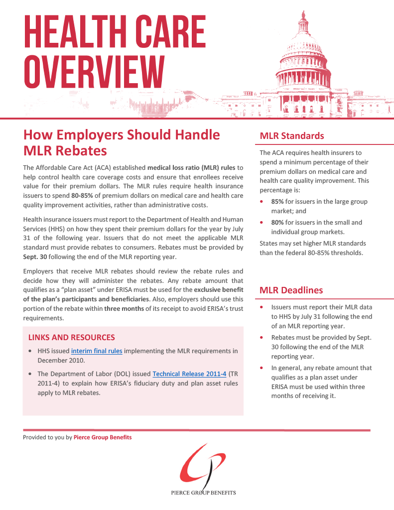 Announcements: Health Care Overview: How Employers Should Handle MLR Rebates
