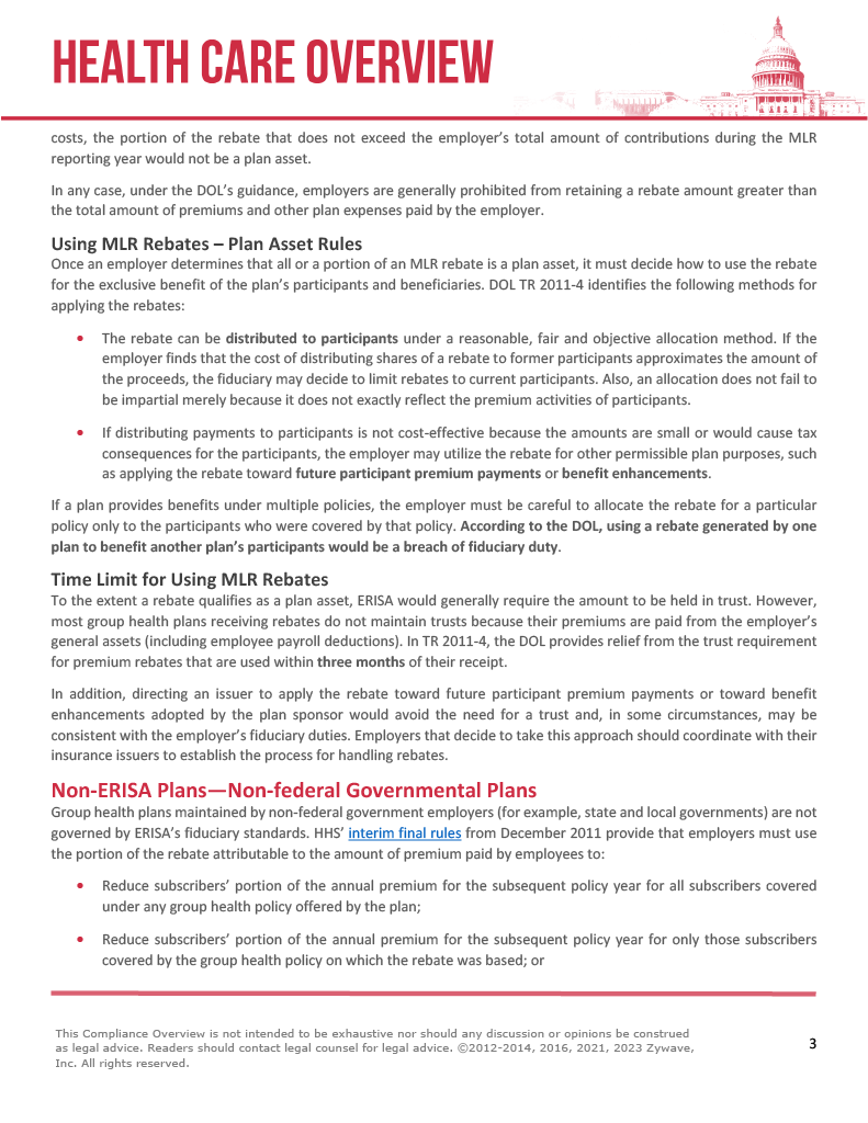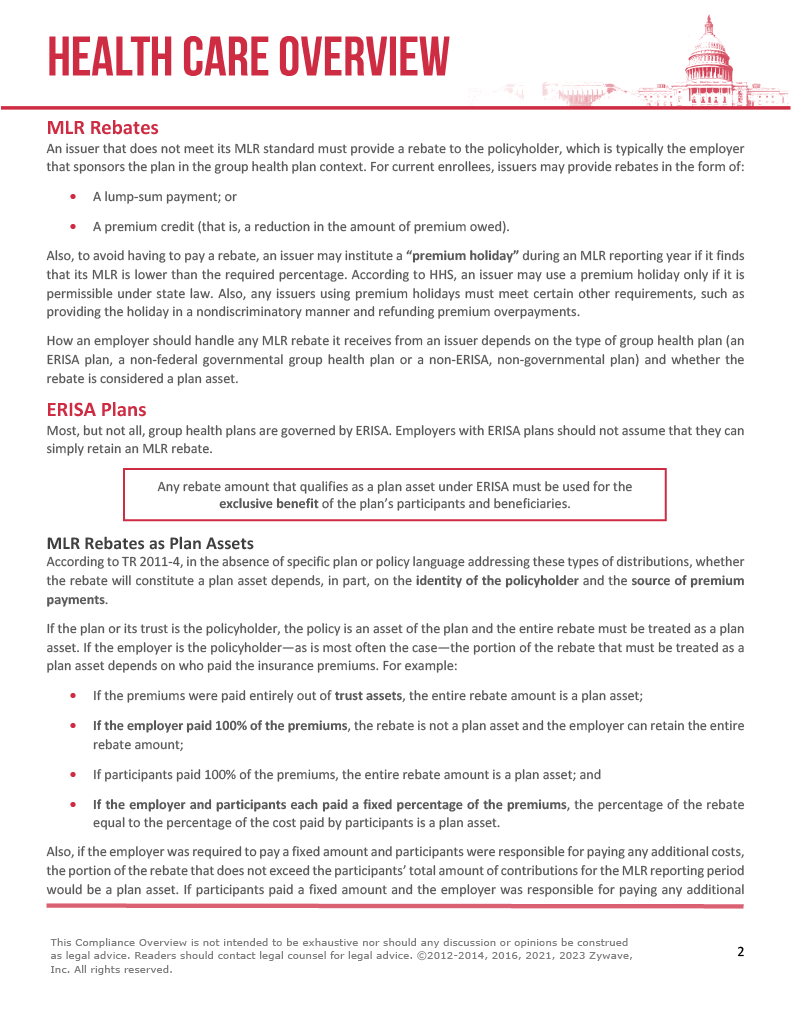 Health Care Overview: How Employers Should Handle MLR Rebates
