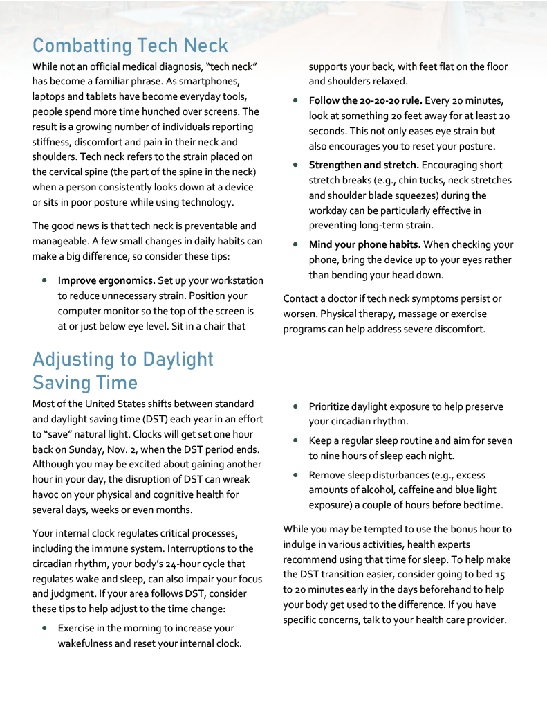 The Power of Gratitude and Positive Thinking, Combatting Tech Neck, Adjusting to Daylight Saving Time Posted on November 2, 2025